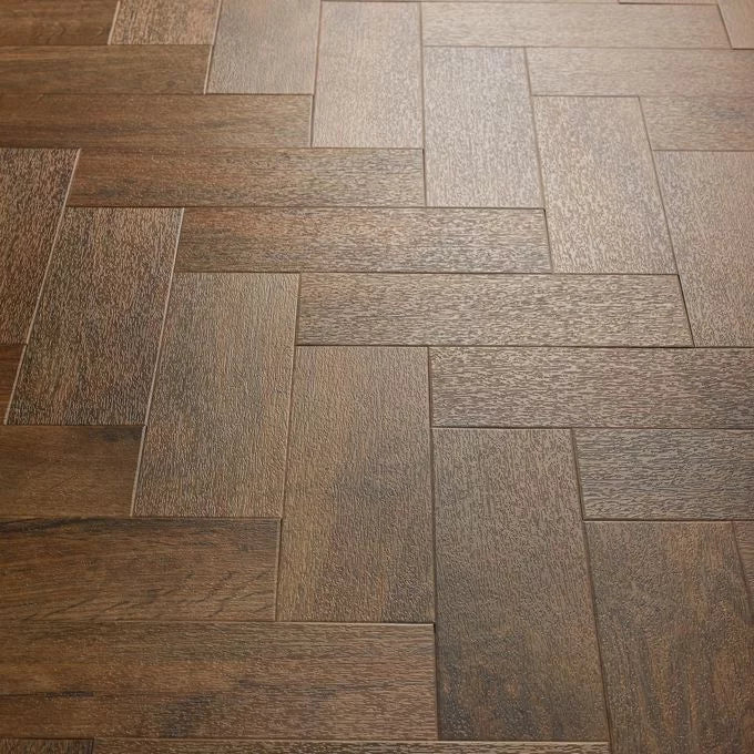 Georgian Parquet-2252-Camaro PUR offers the classic herringbone pattern in a luxurious and elegant wood effect vinyl tile. The PUR coating provides improved resistance to scratches and wear for long-lasting enjoyment.