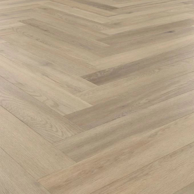 Naked Blond Oak Large Parquet is a luxurious LVT herringbone flooring that recreates the look and feel of real wood with superior durability. Shock and wear-resistant, this flooring is designed to last.